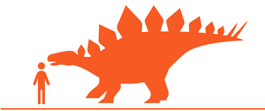 The meaning of Stegosaurus is 'roofed lizard'.Some of the bony plates of this dinosaur can be very large - over 1 meter (3 feet) high. Some scientist believe they were for defence, but others that they may have acted as a way of controlling temperature.