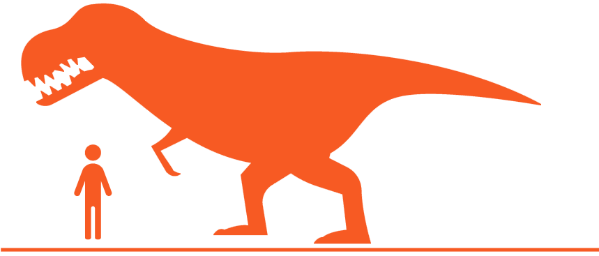 Tyrannosaurus Rex were 12 metres (40 feet) in length and weighed 5 tons. Their heads were over 4 feet (1.25 metres), with very powerful jaws.