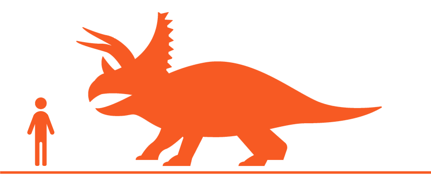 To defend itself against meat eaters (predators) it had two long brow horns. These could grow to be at least 1 metre (3 feet) long. It also had a third shorter horn at the end of its nose. Triceratops would have been able to cause a lot of damage to an attacker!